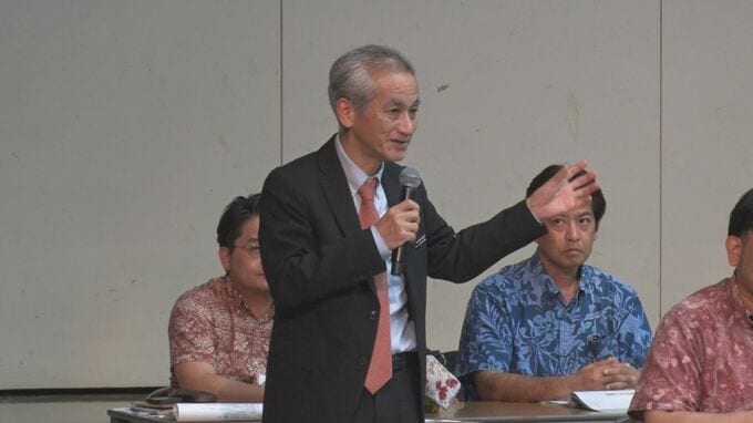 会場となった名護市民会館には、北部地域の住民らが参加し、これまでの経緯や進捗状況について説明を受けました。