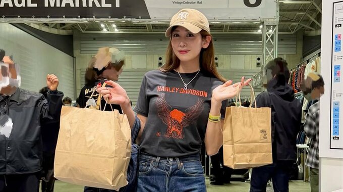 投稿では「初めてのVCM VINTAGE MARKETを堪能してきました」と喜びを綴り、「古着好きの皆さまともお会いできて」と、会場で交流した様子も報告しました。「なんといってもあれもこれも欲しくなっちゃうくらい個性的かつ魅力的なお店が揃ってて幸せなひとときでした」とも記し、充実した時間を過ごしたことが伝わります。「新しくゲットしたものたちもまたアップします」と購入品についても予告しており、次回の投稿への期待も高まります。
