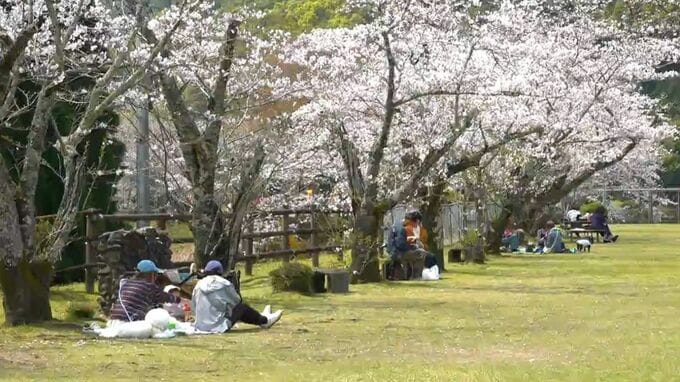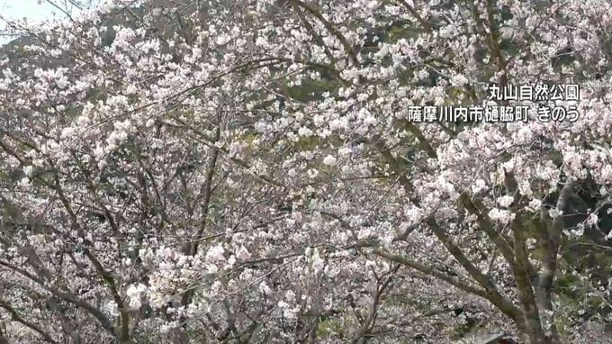 薩摩川内市樋脇町の丸山自然公園では、およそ400本のソメイヨシノが見ごろを迎え、花見をする人たちでにぎわっていました。