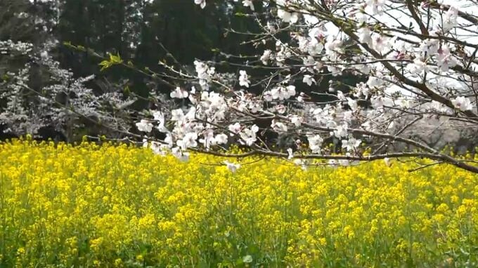 園内では菜の花も見ごろを迎えていて、ソメイヨシノとの「春の花の共演」を楽しむ人の姿がありました。