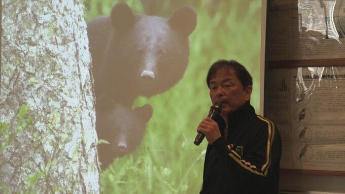 北上市在住の野生動物カメラマン・佐藤嘉宏さんは自らが県内や秋田県で撮影したクマの写真や動画を紹介しました。