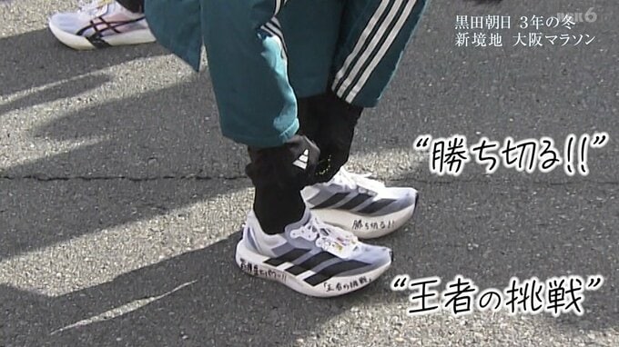 しかし、諦められない理由がありました。靴には『勝ち切る!!』『王者の挑戦』と、チームメイトからのエールが書かれていました【画像㉝】。