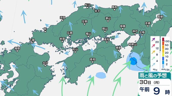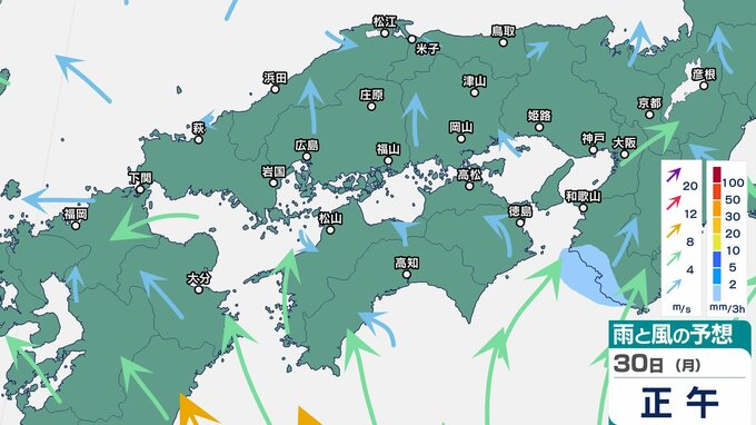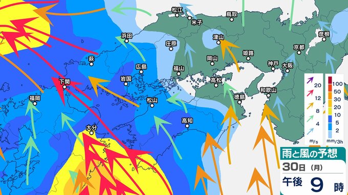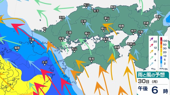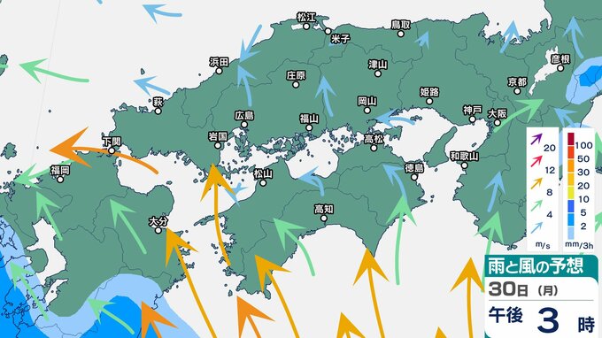 気象庁によりますと、31日は、前線を伴った低気圧が日本海を東北東へ進む見込みです。前線や低気圧に向かって暖かく湿った空気が流れ込むため、中国地方では31日未明から夕方にかけて大気の状態が非常に不安定となり、局地的に雷雲が発達するおそれがあるということです。
