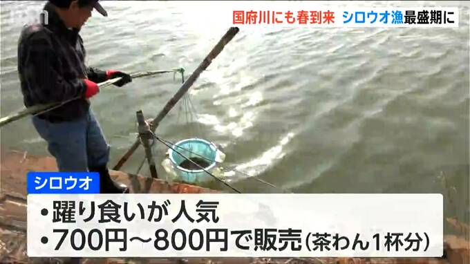 この時期の新鮮なシロウオは、そのまま食べる「躍り食い」が人気だということです。シロウオは、ごはん茶碗一杯分を700円から800円で販売しています。