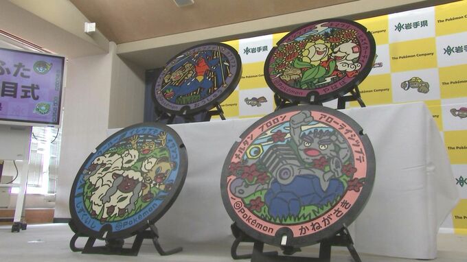 岩手県内4つの市と町に人気ゲームキャラクター「ポケモン」がデザインされたマンホールのふたが贈られ、30日県庁で記念のセレモニーが開かれました。