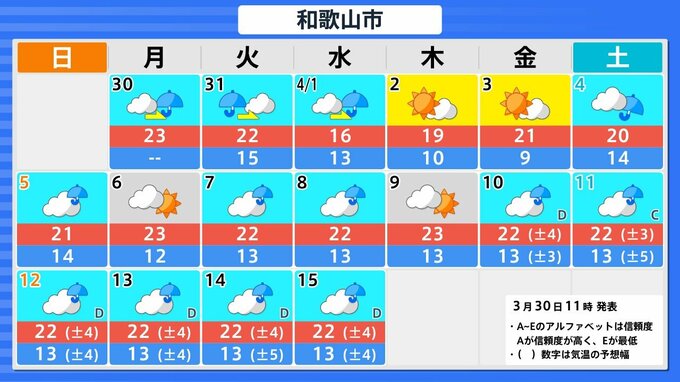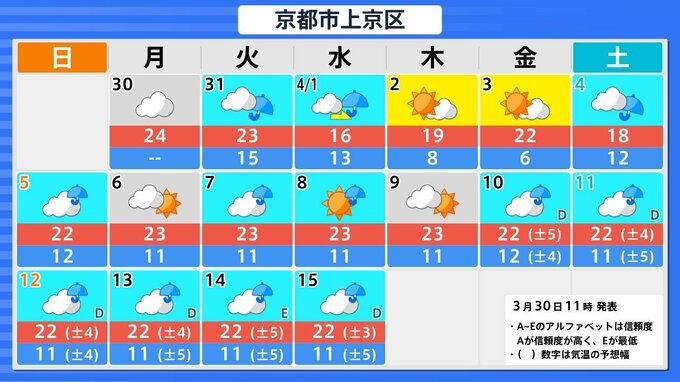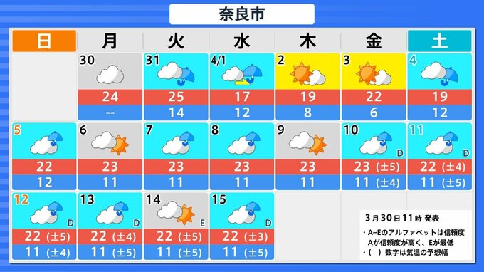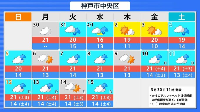 【関西の天気 どうなる?】大阪・京都・兵庫・奈良・和歌山 3月30日(月)~4月4日(土)雨風シミュレーション&16日間天気予報 あす(31日)は大気の状態が非常に不安定 近畿地方は強風に注意【気象庁 30日現在】 RSK山陽放送 2026年3月30日(月) 12:00 国内 大阪・京都・神戸・大津・奈良・和歌山の16日間天気予報 ▶31日(月)~4月4日(土)3時間ごとの雨風シミュレーション ▶31日(月)~4月4日(土)3時間ごとの雨風シミュレーション