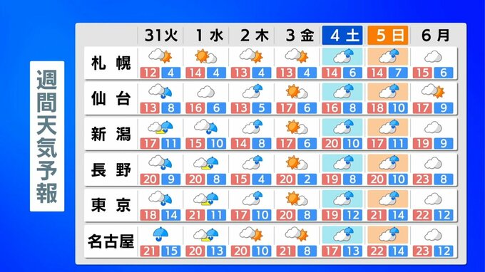 東京は今週末まで桜が見頃です。あすは仙台で、あさっては新潟で桜が開花する予想で、桜前線は平年より早く北へ進みます。
