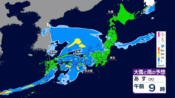 あす、通勤通学の時間帯は、東海から九州の広い範囲で雨が降り、四国や近畿、東海では激しく降る所がありそうです。関東も朝から断続的に雨が降り、昼頃からは本降りの時間が長くなるでしょう。東北も本降りの雨の範囲が広がり、雨脚が強まる見込みです。発達する雨雲の元となる湿った空気が流れ込むため、西日本を中心に気温が高く、ムシッとした体感になるでしょう。