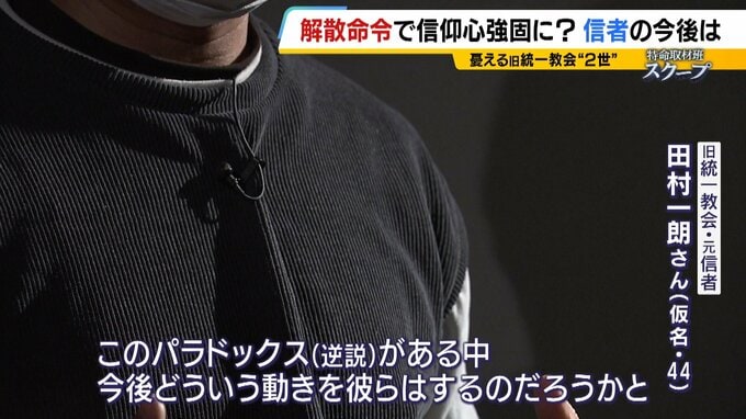 (田村一朗さん・仮名)「解散ということで、『反社会的な団体』だと烙印を押されてしまった。“でも、私はそこが出自なんだ”と。このパラドックス(逆説)がある中、今後どういう動きを彼らはするのだろうかと」