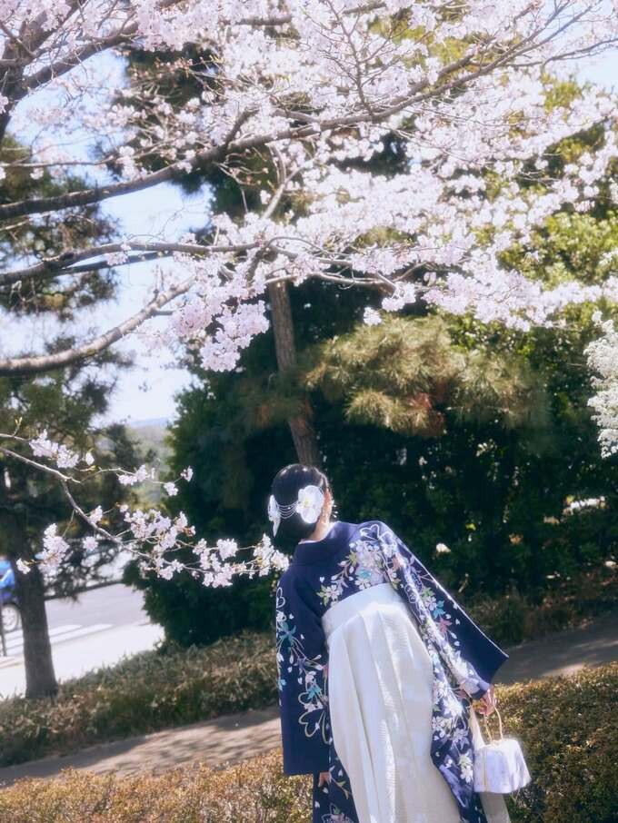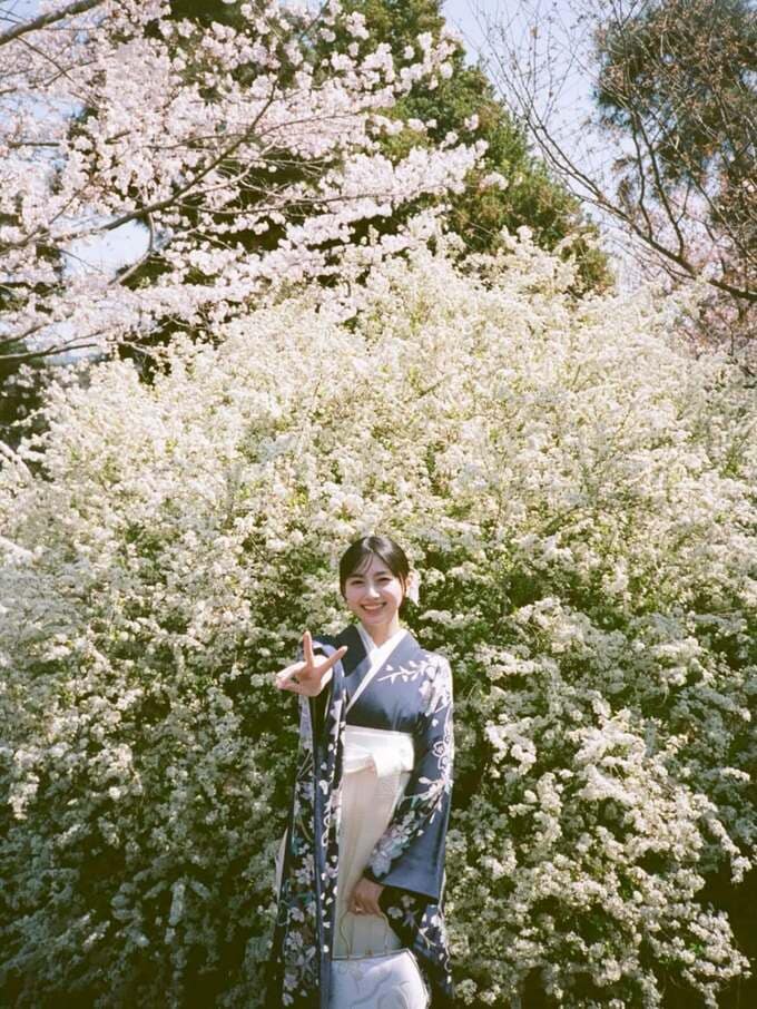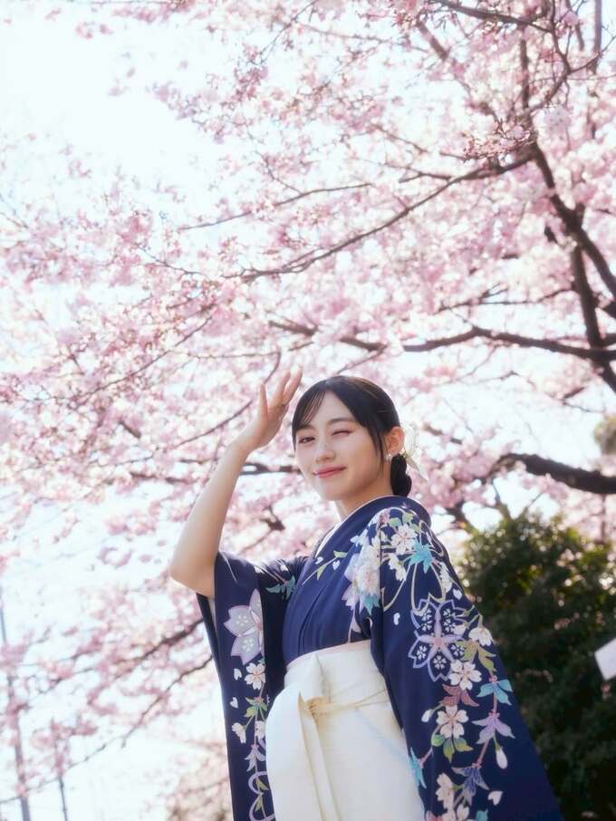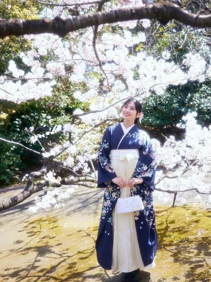 また、卒業式での振袖については「少し大人になった自分を表現したくて、いつもは選ばない紺色の振袖を選んでみました。でも振袖と袴はしっかり桜柄です」と自らの名前にちなんだこだわりを明かしました。