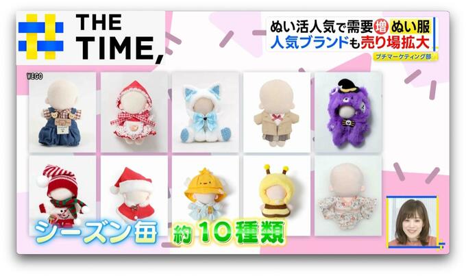 「アイドルのグッズとかでぬいぐるみが増えてきたというのもあり、ぬい服(ぬいぐるみ専用の服)の売上げは発売当初の2024年あたりから“3倍伸びている”」