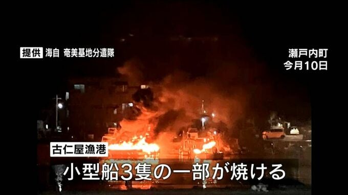 瀬戸内町の古仁屋漁港で、小型船3隻の一部が焼ける火災