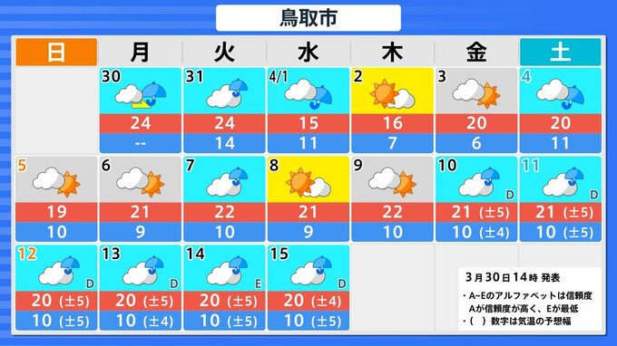 全国で4月5日頃から「この時期としては10年に一度程度しか起きないような著しい高温」になる可能性 気象庁が「高温に関する早期天候情報」発表