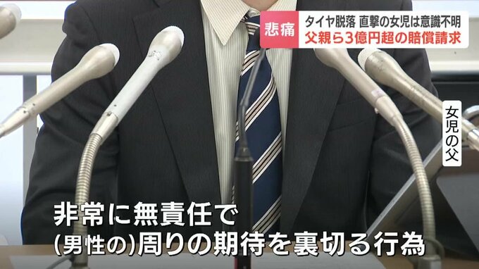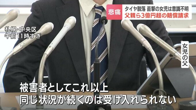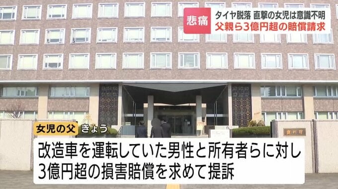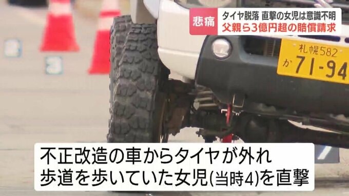 2023年11月、札幌市で不正改造された車から外れたタイヤが当時4歳の女の子に直撃した事故で父親らは30日、車を運転していた男性らに対し3億円を超える損害賠償を求める訴えを起こしました。