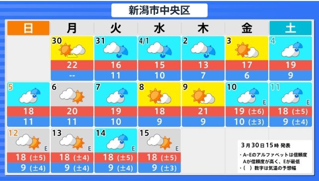 3月30日午後2時30分 新潟地方気象台 発表