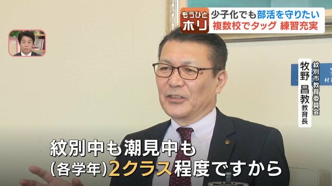 「紋別中も潮見中も、(各学年)2クラス程度ですから、もうチームを組めない競技がたくさん出てきている」