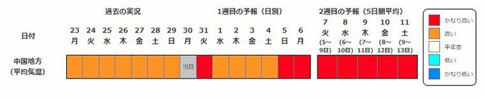 高温に関する早期天候情報(中国地方)
