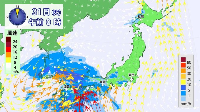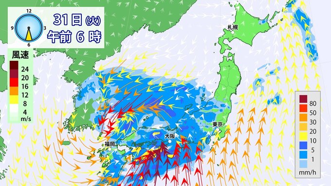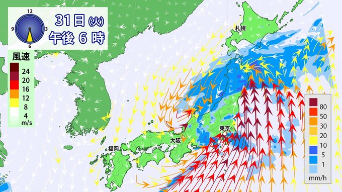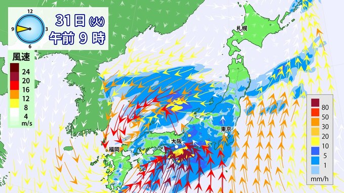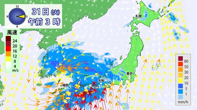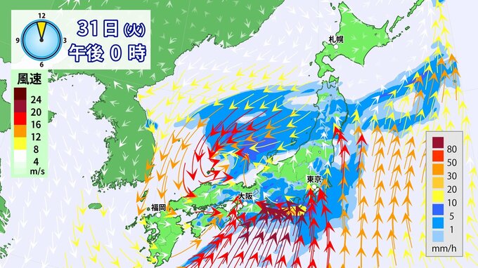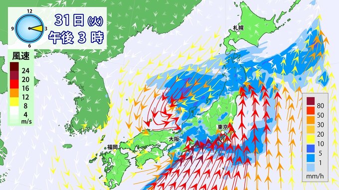 31日(火)は雨・風強まり「春の嵐」に九州から関東を中心に「警報級」大雨のおそれ