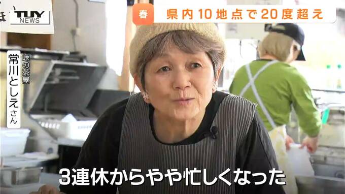 峠の茶屋 常川としえさん「(Q暖かい陽気に)3連休からやや忙しくなった。常連さんと顔を交わすのが一番楽しみ。お互いだけど」