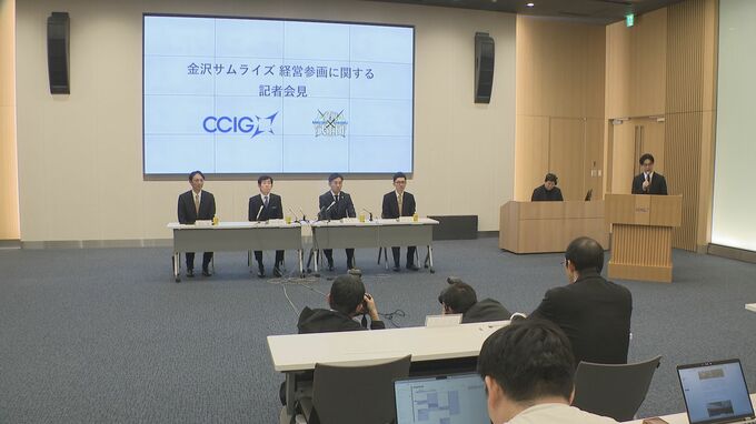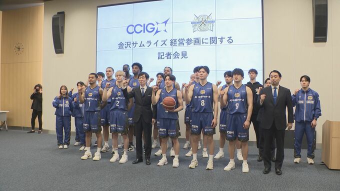 プロバスケットボールチームB3の金沢武士団を子会社化した、北國銀行の「CCIグループ」が30日会見を開き、杖村修司社長がスポーツを通して地方創生に取り組む姿勢を強調しました。