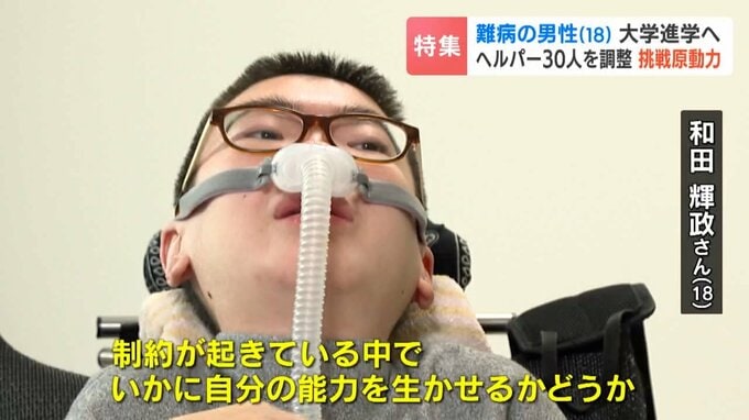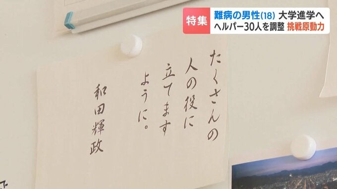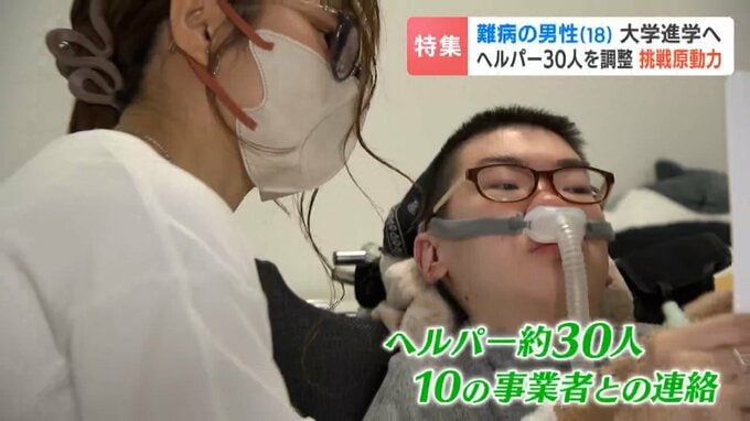 輝政さんは、一人暮らしを始める時、バリアフリーの部屋を探すのに大変苦労したということです。病院を離れることになるので体調が悪くなってしまったときの不安はありますが、今は30人のヘルパーと緊急時の対応などを練習しているということです。ヘルパーは1日10時間交代で輝政さんに寄り添っているそうです。