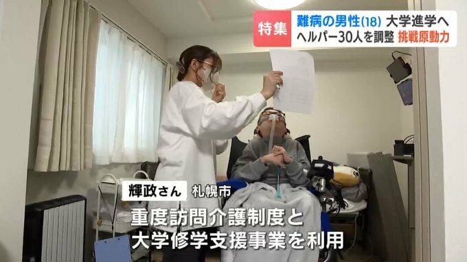 輝政さんは24時間、介助が必要です。札幌市の重度訪問介護と大学就学支援でその生活が実現しました。