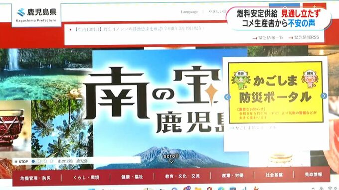 田植え準備進むも燃料の安定供給見通し立たず コメ生産者から不安の声 南日本放送 2026年3月30日(月) 19:41 国内 鹿児島県が経営・融資相談窓口HPを開設 中東情勢の混乱と原油価格の上昇が続く中、鹿児島県はきょう30日からホームページに、県や商工会議所などの経営相談の窓口や、融資制度の問い合わせ先をまとめたページを掲載しています。 また、生活物資の流通状況なども掲載されています。