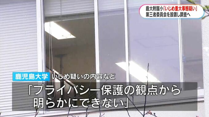 附属小学校でこれまでにいじめなどに関する第三者調査委員会を立ち上げたことがあるかどうかについて「把握していない」しています。鹿児島大学は「期限を切らずに誠実に対応したい」とコメントしています。