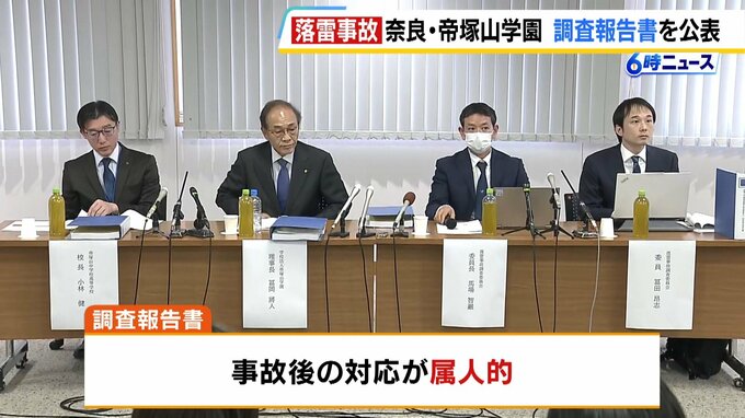 学校のグラウンドに雷が落ちて生徒6人が病院に運ばれた事故をめぐり、学校が調査結果を明らかにしました。 (学校法人帝塚山学園・冨岡将人理事長・学園長)「心からお見舞いとお詫びを申し上げたい」 去年4月、…