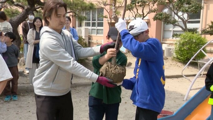 歴史ある小学校で28日初めて行われたのは、桜の植樹式。