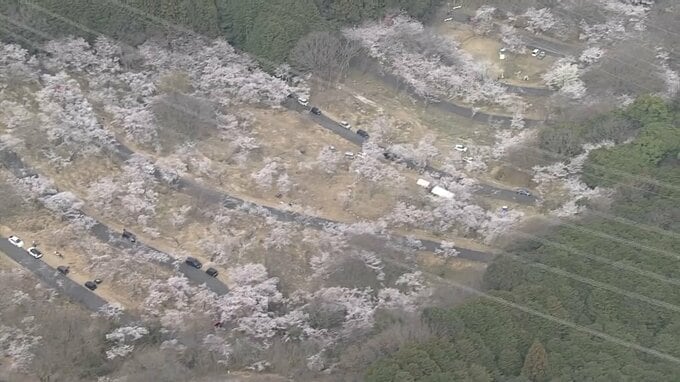 つづら折りの峠道に植えられた桜約1000本が見頃を迎えていて、その景色は、まさに桜のトンネル。
