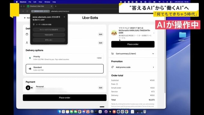 「『マックのポテトMサイズ2個をオーダーしてくれる?』こうやって言うと、実際にブラウザを開いて僕のウーバーイーツのアカウントにログインして、マクドナルドを検索」