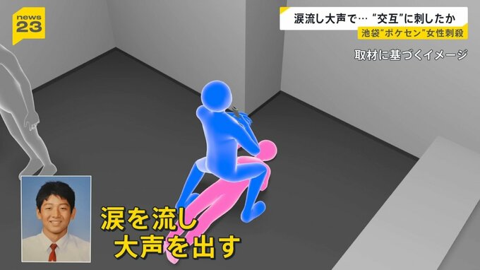 逃げる女性の後を追いかけ、馬乗りになって何度も女性と自分の首などを交互に刺し続けたという容疑者。涙を流しながら大声を出していたといいます。
