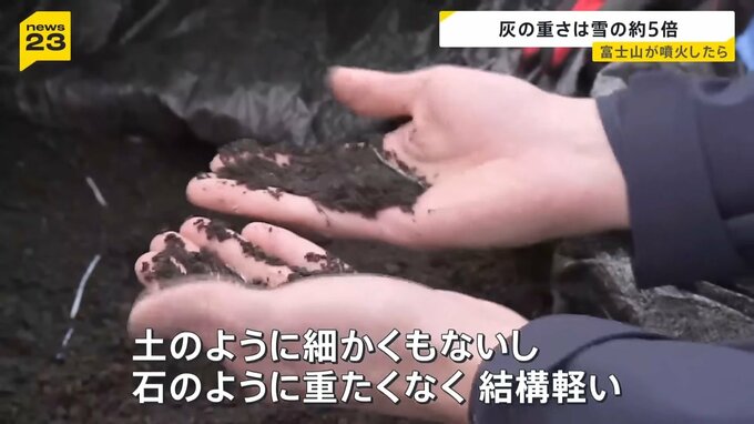 実際に火山灰を触ってみると…灰の重さは雪の約5倍