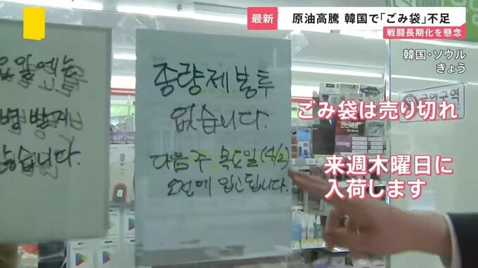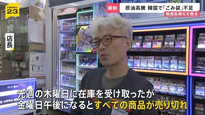ソウル市内のコンビニでは、石油由来の製品で、生活に欠かせない指定ごみ袋が不足しています。