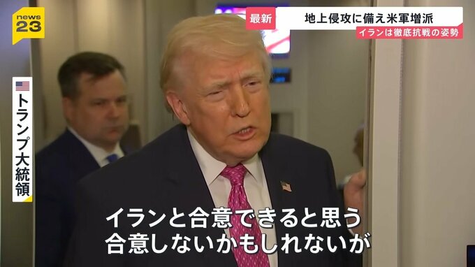戦闘の停止に向け、近く合意できる可能性があると主張しました。一方で、イランへの地上侵攻に備えたアメリカ軍の増派も進めています。