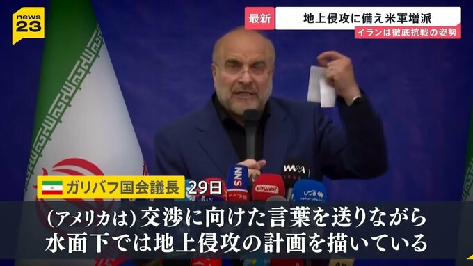 ガリバフ国会議長はアメリカが地上侵攻に踏み切れば、「我々の戦士が彼らの命にとって脅威となる」とし、徹底抗戦する姿勢を示しました。