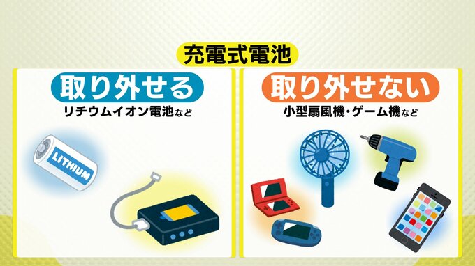 正しい捨て方を把握するのに重要になるのが、充電式電池を取り外せるのか、取り外せないのかです。イメージはご覧の通りです。