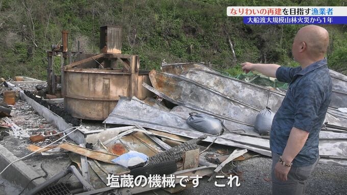 三陸町野々前地区に住む塩口さんは、自宅は無事だったもののなりわいの拠点である作業場兼倉庫が山林火災で被害に遭い、ワカメ養殖で必要な資材や機械も失ってしまいました。