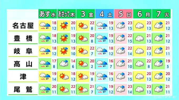 あす水曜日の朝は日差しが届く所もありますが、午後は再び雨雲が広がるでしょう。あさって木曜日や金曜日は、晴れ間が戻る所が多い予想です。
