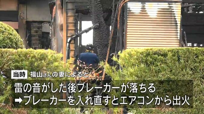 福山さんの妻によりますと、「昨夜10時ごろに雷の音がした後、家のブレーカーが落ちたため、ブレーカーを入れ直したところ、エアコンから火が出た」ということです。