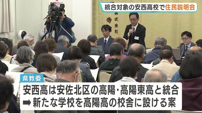 広島県教委による県立高校の再編計画案をめぐって、統合の対象となっている安西高校の地元で住民説明会が開かれました。