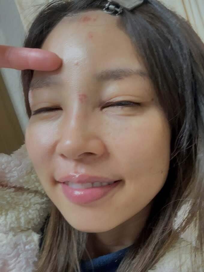 続けて「熱ではなく、公園で滑り台を駆け上がった先の柵にゴン。見事なたんこぶ爆誕した43歳です。(数時間後にひいて喜ぶも、現在じわじわパンダ目に)」と綴ると、痛々しい姿の写真をアップ。