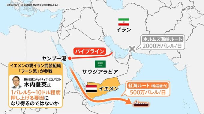 「1バレル5~10ドル程度押し上げる要因に」フーシ派参戦で