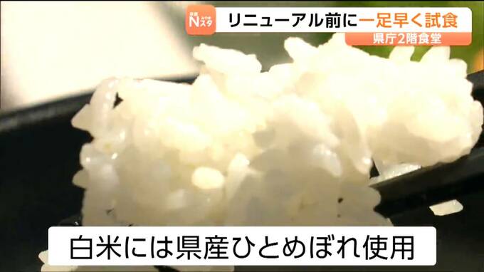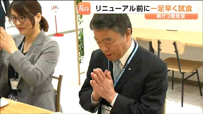 宮城県庁2階の食堂が4月1日、リニューアルオープンするのを前に、31日、関係者が新しい食堂を見学しメニューを味わいました。