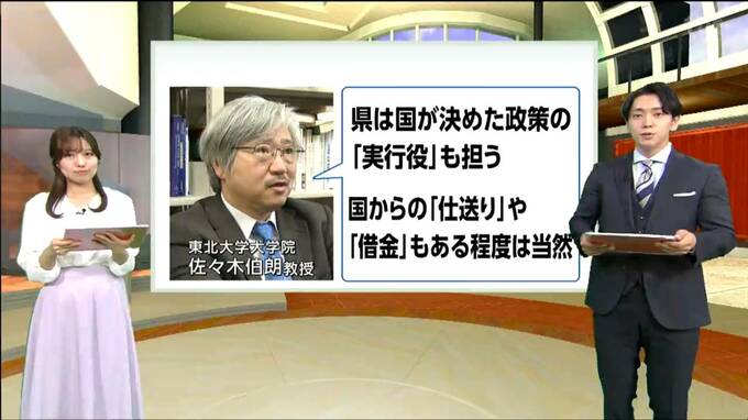 佐々木教授は、「県は、国が決めた政策を実行する役割も担うため、国からの『仕送り』や、『借金』などもある程度は当然」と話していました。
