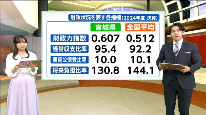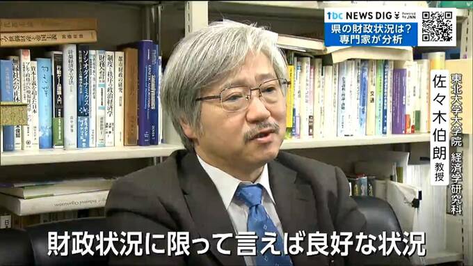 地方財政に詳しい東北大学大学院の佐々木伯朗教授です。財政の健全性を測る様々な指標からみても、宮城県の財政状況は比較的良好だと話します。