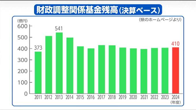 ちなみに、貯金にあたる「財政調整関係基金」は約410億円です。