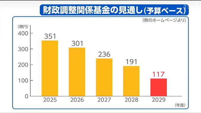 ここ10年ほどは横ばいが続いていますが、2029年度末には基金の残高は117億円にまで減る見通しとなっています。
