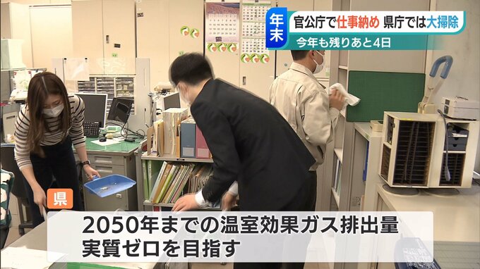 官公庁や多くの企業で仕事納めとなる28日、新潟県庁でも大掃除が行われ、職員が1年間のほこりを払っていました。